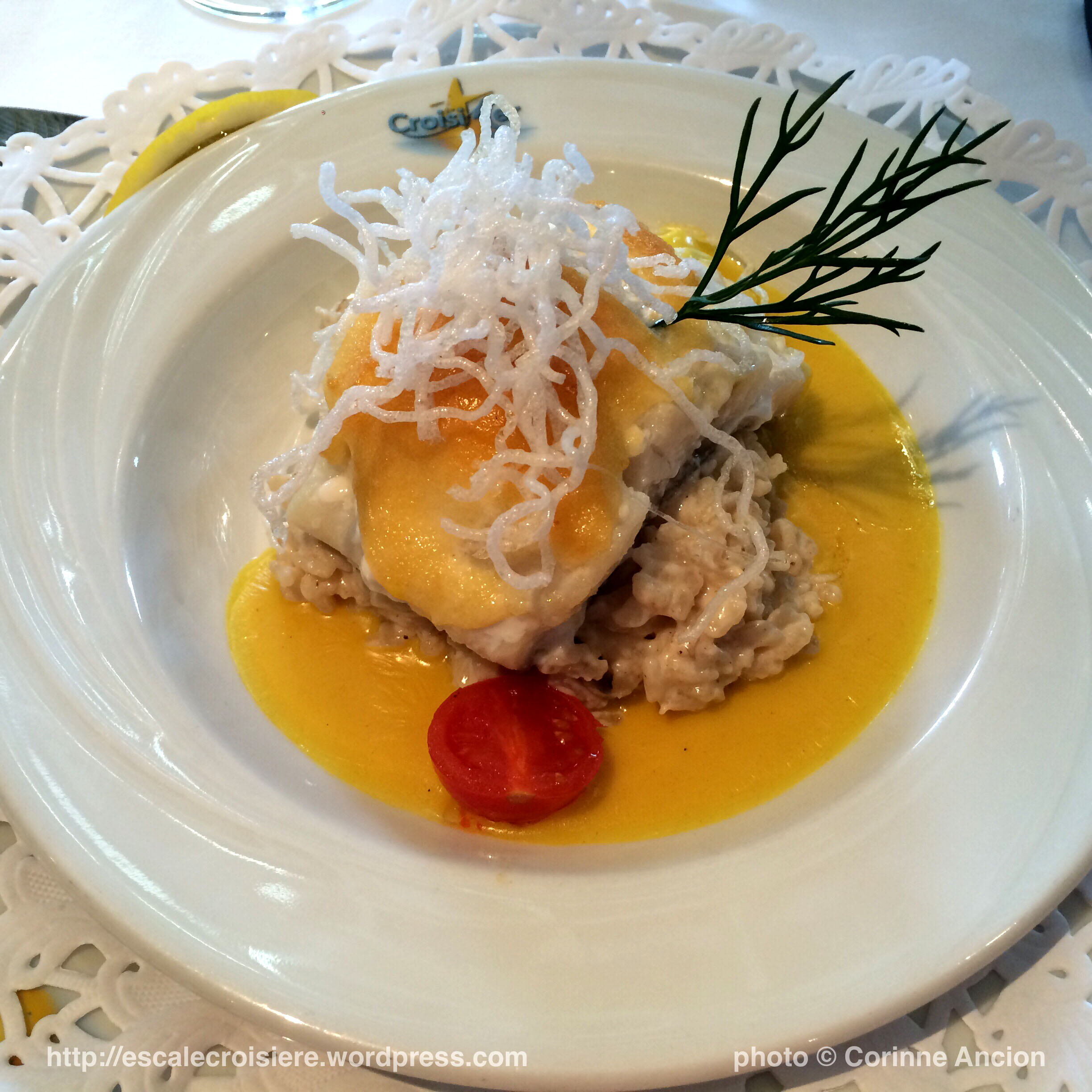 Belle de l’Adriatique – Les menus Publié 30 avril 2016 à 2448 × 2448 dans Journal de bord : Croatie et Monténégro à bord de La Belle de l’Adriatique ← Précédent Suivant → Filet de cabillaud cuit avec sa croûte d’aïoli sauce safrané et risotto aux champignons Belle de l’Adriatique – Les menus En savoir plus sur Escale croisière Abonnez-vous pour recevoir les derniers articles par e-mail. Saisissez votre adresse e-mail… Abonnez-vous