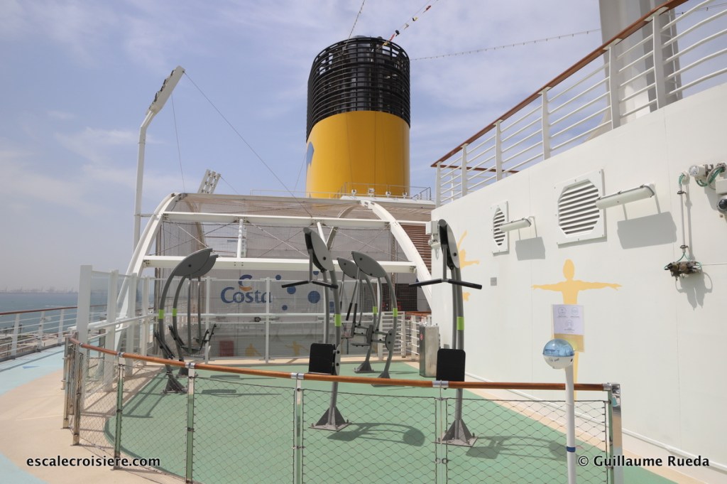 Le Costa Firenze dispose de deux piscines, deux jacuzzis et de ponts idéalement aménagés avec de nombreux solariums. Avec ses petits parasols bleus et jaunes, ses espaces détente pour les couples ou les grandes familles, ce navire ne ressemble à aucun autre. On trouve aussi bien des salons confortables, des transats matelassés, des balançoires… )