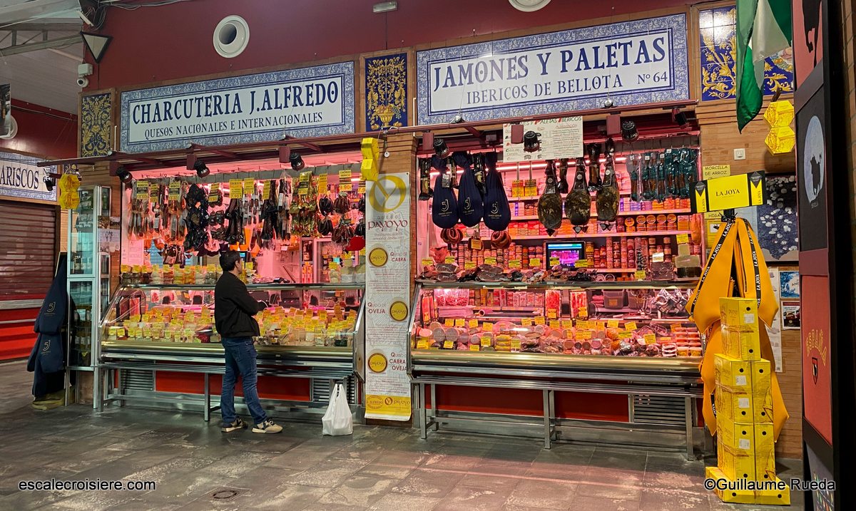 Le programme de cette journée permet de mieux s’imprégner de la ville. On traverse le Pont Isabelle II pour rejoindre le Mercado de Triana, dont les étals sont en train d’être installés. Ce marché typique est situé juste à côté de la Tour Puente de Barcas, décorée de céramiques caractéristiques du quartier.