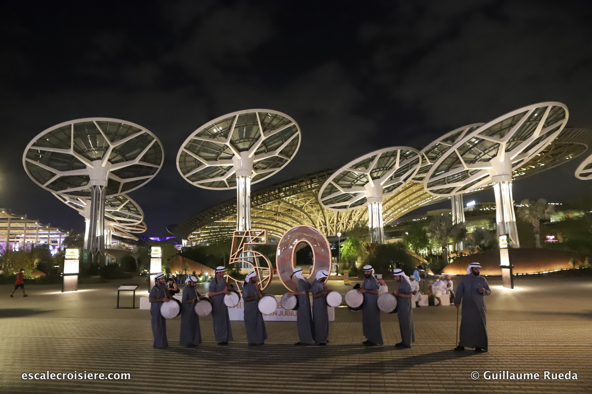 Le nom de ce « quartier » Jubilee, fait référence au 50e anniversaire des Émirats Arabes Unis qui s’est tenu pendant la période d’ouverture de l’exposition avec une date anniversaire célébrée le 2 décembre 2021 à grand renfort de feux d’artifices et de drones show incroyables. Tout autour de l’exposition le ciel s’est embrasé de lumière donnant envie d’être partout à la fois.