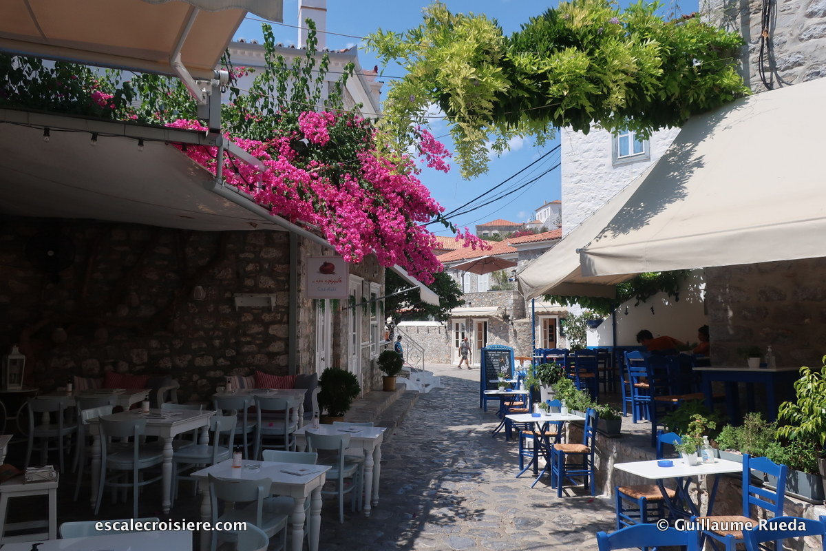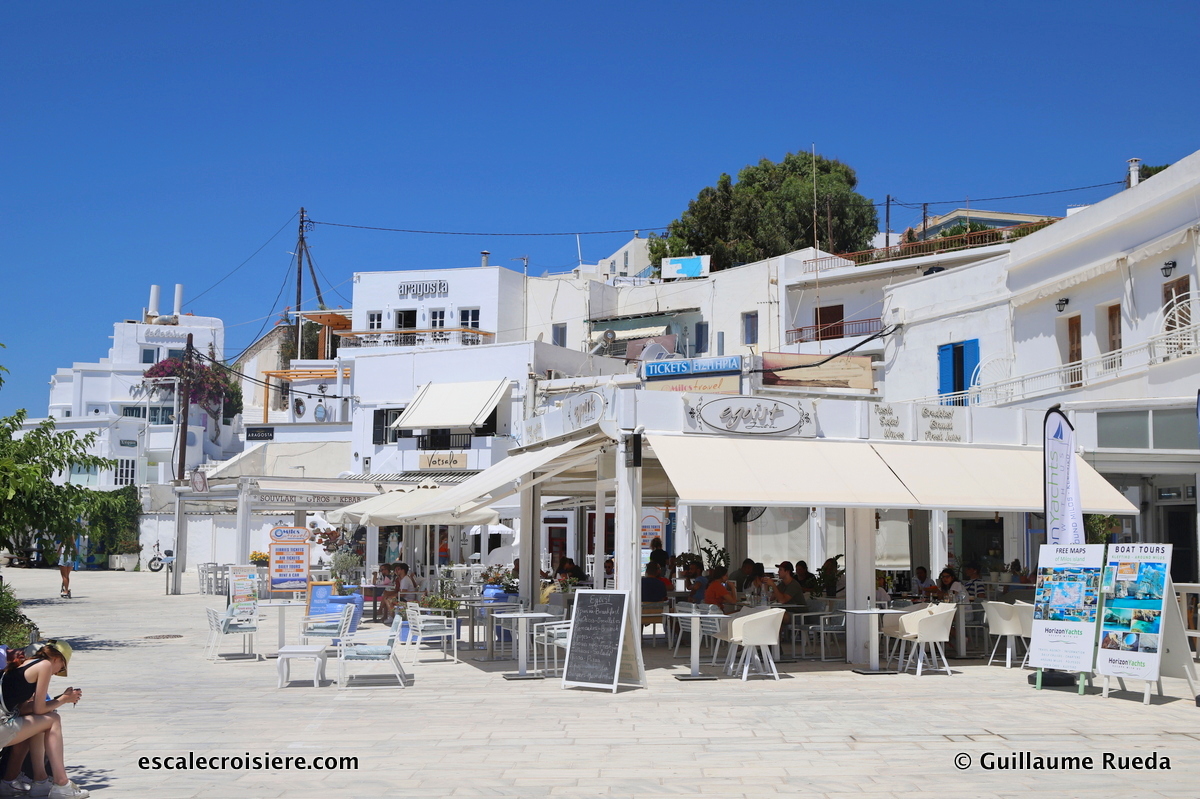 Je m’accorde une pause déjeuner en terrasse sur le port. Je déguste de la feta au four, arrosée de miel et de vinaigre balsamique. Un délice !
