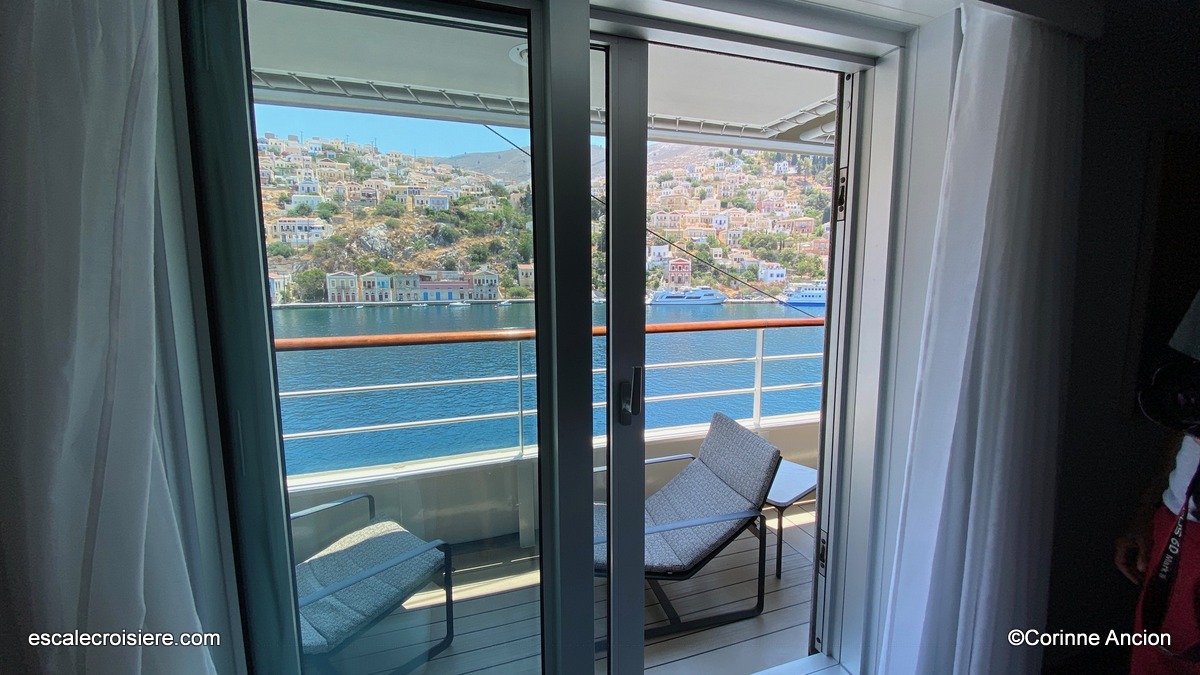 Les valises sont déjà devant la porte de la Suite 603. Avec ses 26 m2, elle est particulièrement bien équipée : nombreux rangements, petit bureau, coiffeuse avec sèche-cheveux, canapé convertible, télévision à écran plat, mini-frigo, thé/café, petit balcon équipé de chaises et d’une petite table… Le journal de bord présente les temps forts de l’itinéraire et rendez-vous est pris pour le traditionnel exercice de sécurité obligatoire pour tous les passagers avant le départ.
