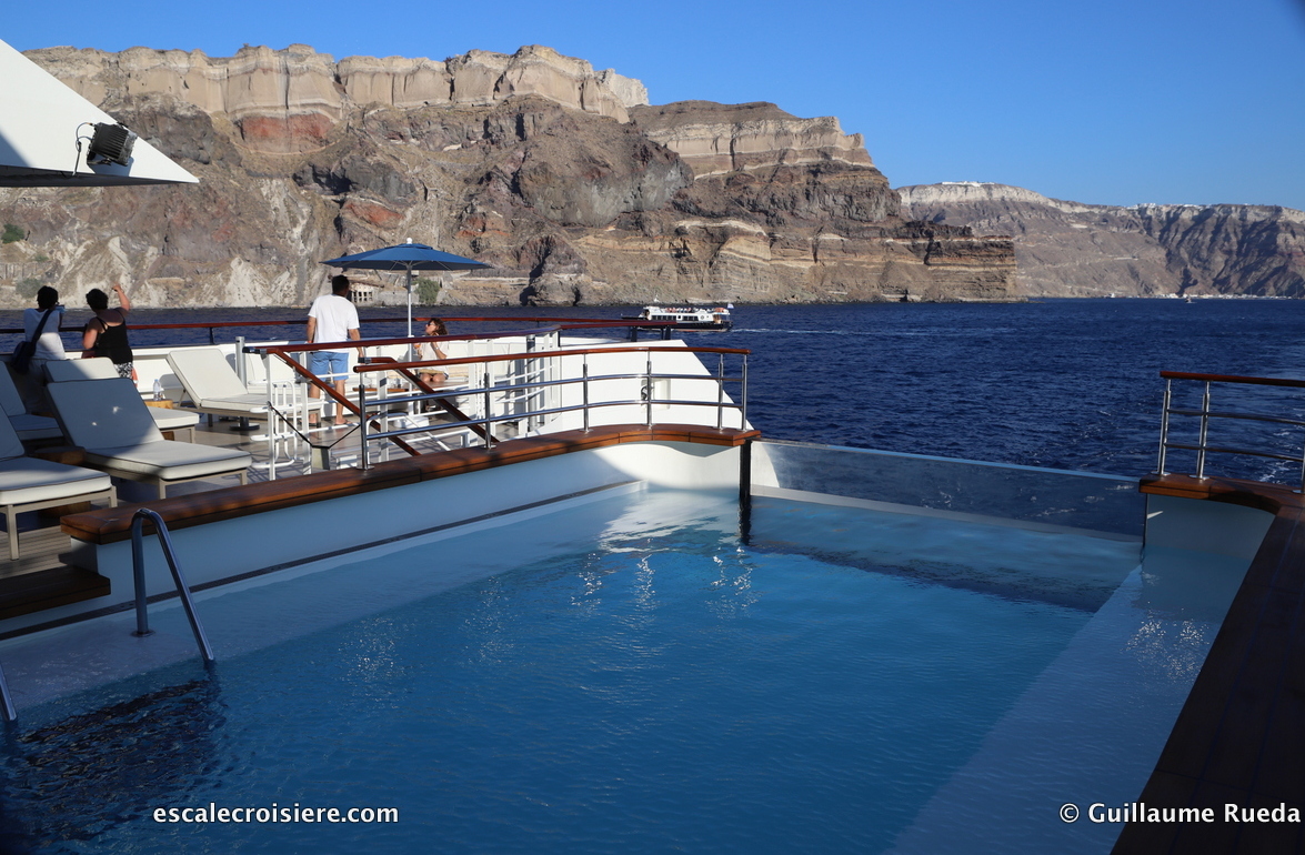Quatre jours de mer, c’est idéal pour profiter du soleil et de la chaleur qui s’est définitivement installée. Je suis très matinale et je peux vous dire que dès 7h30, de nombreux transats sont déjà réservés par les passagers qui posent leurs affaires et s’en vont. Ce n’est pas autorisé, mais l’équipage n’a pas le droit de toucher aux effets personnels des croisiéristes. Bref, une histoire sans fin qui fait s’échauffer les esprits dès le début de la journée. Tout le monde finissant par trouver son petit coin au soleil, il ne reste plus qu’à en profiter.
