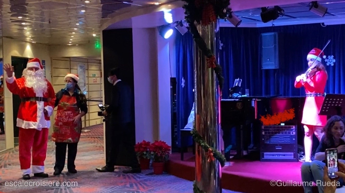 Le paquebot est pour moi tout aussi important que l’itinéraire. C’est particulièrement vrai pour une croisière de 18 jours. Personnellement je préfère un grand navire. Le MSC Fantasia, mesure 333 mètres de long et peut accueillir plus de 3 200 passagers. Il possède 12 jacuzzis et 4 piscines dont une avec un toit rétractable. C’est rassurant car, même en hiver, on sait que l’on pourra se baigner. Avec 27 000 m² d’espaces publics, 13 bars et salons, 5 restaurants et surtout un grand théâtre très bien agencé (c’est à dire sans colonne qui gêne la vue), j’étais certaine qu’il y aurait de quoi faire. Cerise sur le gâteau, le MSC Fantasia a été construit à Saint-Nazaire et je l’avoue, je suis fière de naviguer sur un paquebot Made in France.