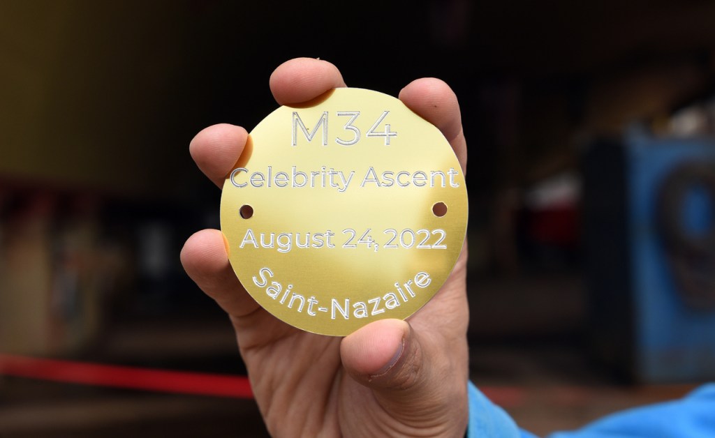 C’est Jason Liberty, le PDG du groupe Royal Caribbean, la filiale de Celebrity Cruises et Laurent Castaing, le Directeur Général de Chantiers de l’Atlantique, qui ont eu l’honneur de placer les pièces lors de la traditionnelle cérémonie navale. D’après la légende, et selon une tradition respectée depuis des siècles, cette pratique permettrait de bénir le navire et de porter bonheur.