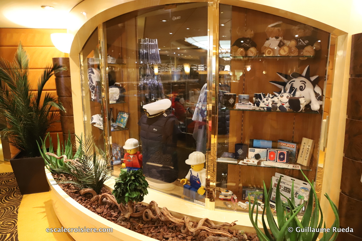 Des boutiques sont à la disposition des passagers. On peut y acheter des souvenirs, cartes postales, produits de première nécessité. Il y a également une boutique de mode, une bijouterie, un photographe, un duty free, une boutique d’objets et de vêtements au logo de la compagnie MSC Croisières.