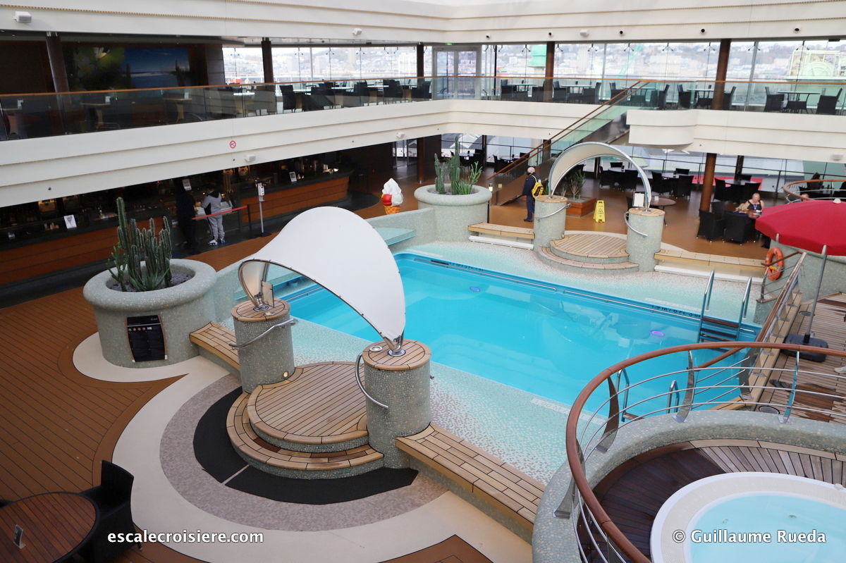 Avec son toit coulissant la piscine couverte peut se découvrir par beau temps. Les passagers peuvent ainsi profiter de la piscine quelle que soit la météo.