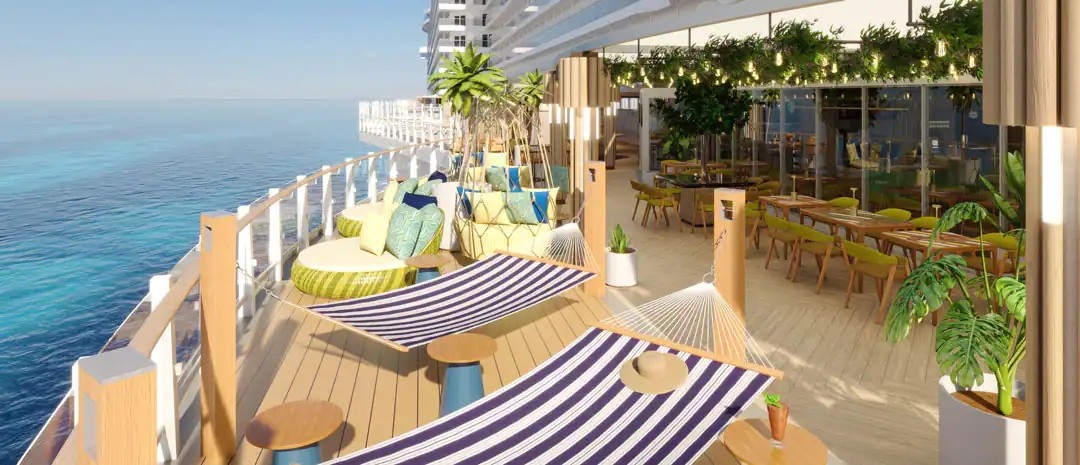 Pour la première fois, NCL a déplacé les 107 suites The Haven à l’arrière du navire à proximité d’ascenseurs privés exclusivement réservés aux clients The Haven. Ces ascenseurs mènent directement aux espaces communs de l’espace sur les ponts 16 et 17. La compagnie a également fait évoluer le design de cet espace pour qu’il soit plus ouvert sur la mer avec une vue imprenable sur l’océan et les destinations visitées.