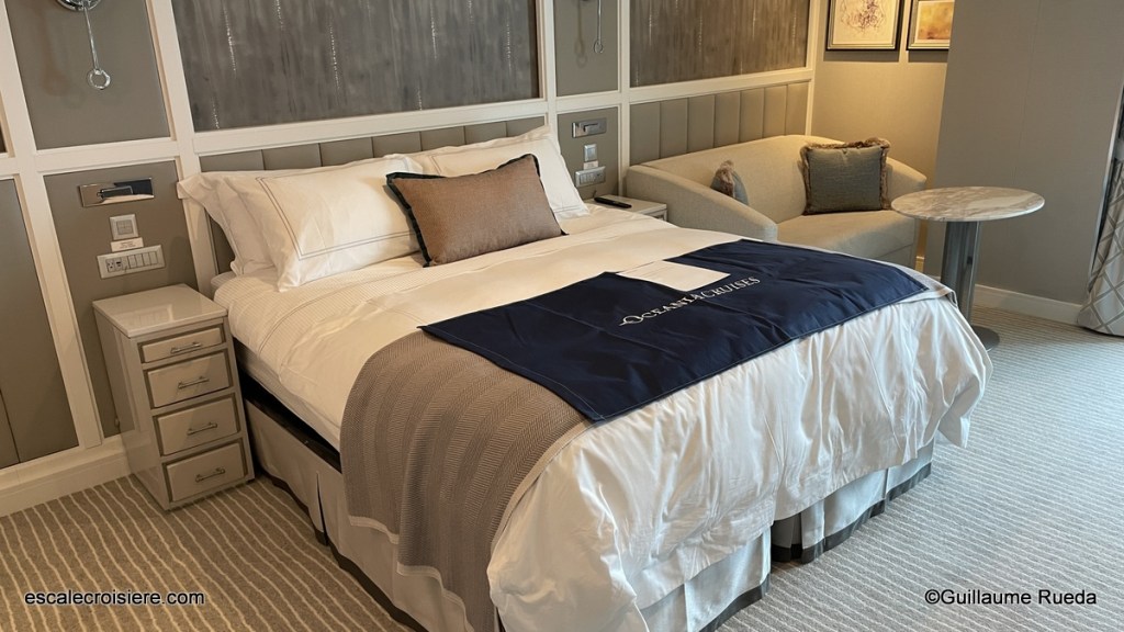 Les cabines standards sont parmi les plus spacieuses en mer. Toutes les suites Penthouse et les cabines disposent de grandes salles de bains avec des douches tropicales surdimensionnées. Toutes les suites Owner’s, Vista et Oceania disposent de luxueuses baignoires. Les Suites palatiales du propriétaire et bibliothèque situées en haut du navire ont été conçues exclusivement dans le style Ralph Lauren Home. Des cabines individuelles Veranda niveau Concierge sont disponibles pour faciliter la vie des voyageurs solo. Les passagers voyageant en cabines et suites de niveau Concierge Veranda bénéficient d’un concierge personnel et de salons exécutifs.