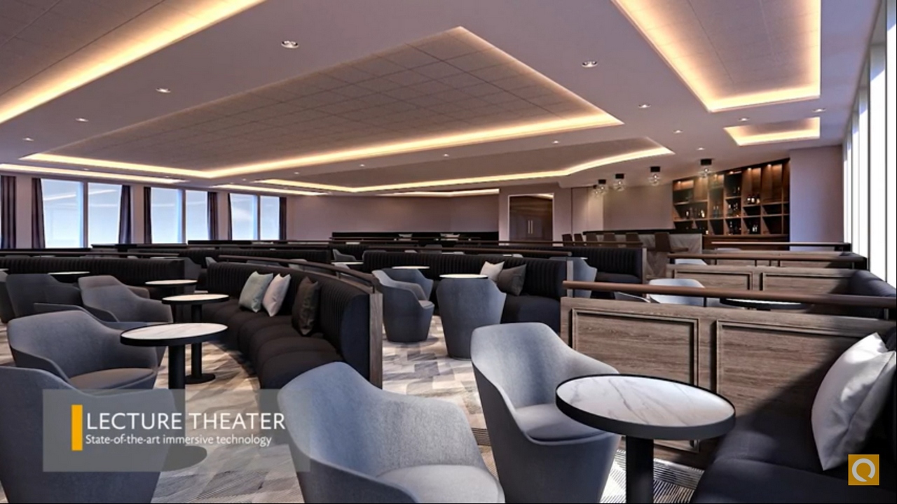 L’amphithéâtre est équipé d’un écran LED haute résolution et de systèmes de traductions en temps réel. Les conférences des experts Quartk seront également retransmises en direct en cabine.