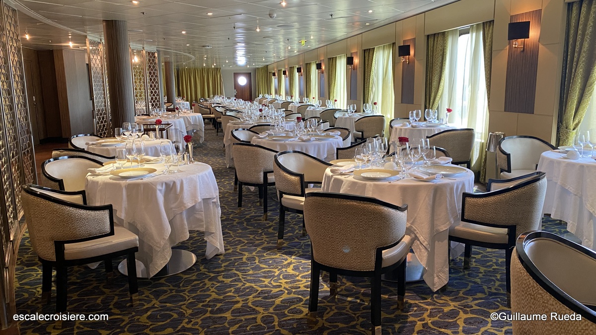 C’est le restaurant principal du navire. Il est présent sur l’ensemble de la flotte Regent. Il sert des spécialités régionales et internationales, ainsi que des plats végétariens, cashers et des menus diététiques. On peut venir s’y restaurer librement à l’heure que l’on souhaite sans réservation.