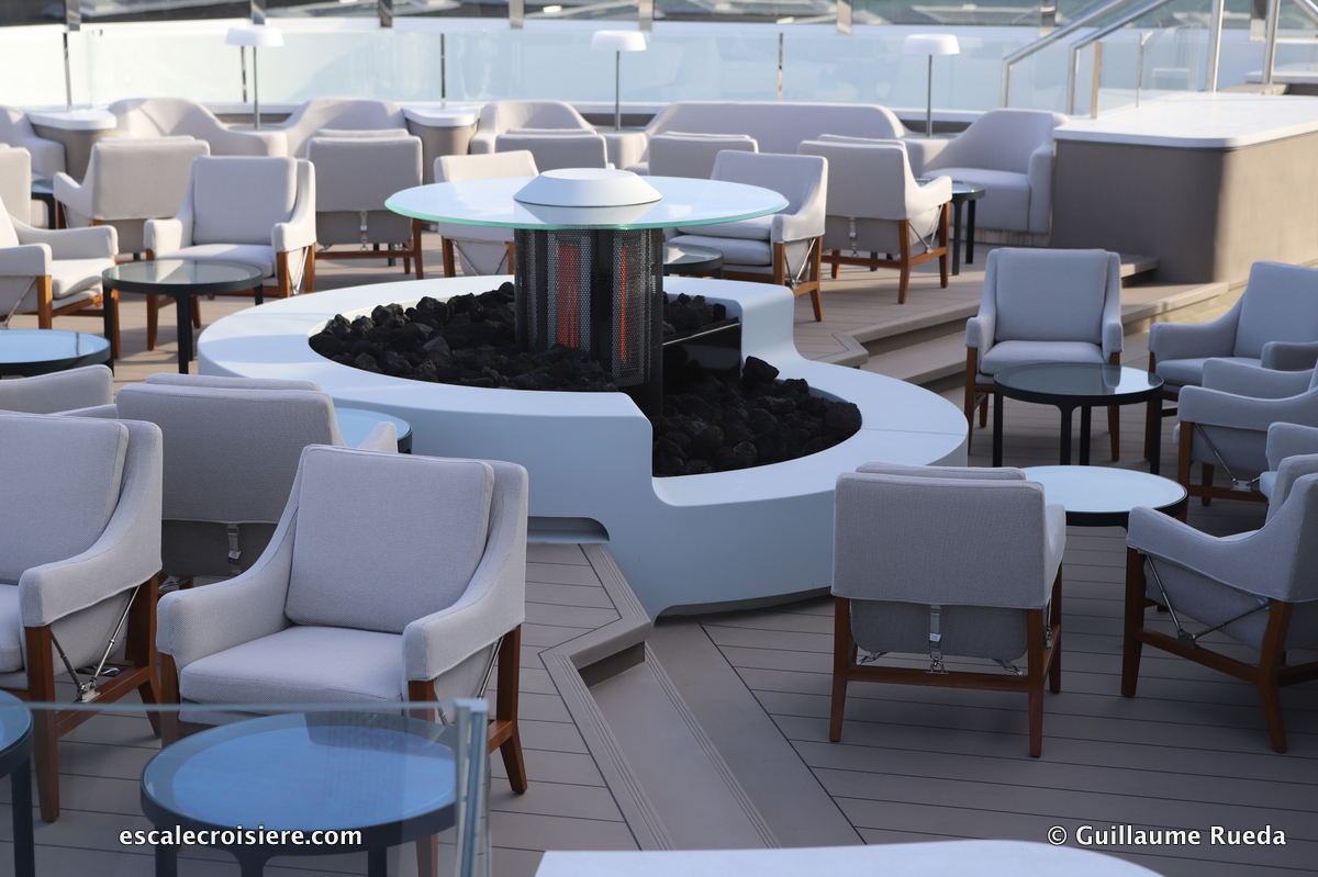 Ouvert sur l’extérieur, les passagers peuvent s’y détendre et prendre un verre en musique.