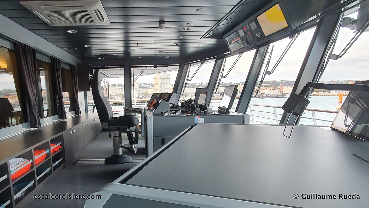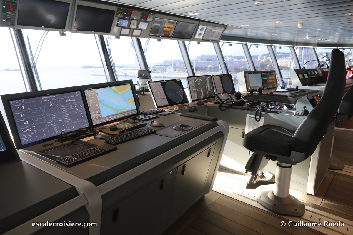Ce lieu habituellement réservé aux officiers de commandement du navire ouvre ses portes à tous les passagers 24h/24. On peut y suivre la navigation à toute heure tout en respectant le sérieux que nécessite un tel lieu d’observation. La navigation sur les navires du Ponant offre cette possibilité quasi impossible sur les autres navires de croisière.
