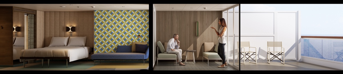 Peu d’images du futur navire sont disponibles à ce jour, il va donc falloir faire preuve de patience pour découvrir plus en avant la nouvelle atmosphère de ce paquebot innovant. Voici quelques images qui reprennent ce qu’ont pu voir les privilégiés qui ont visité le navire avec des lunettes de réalité virtuelle.