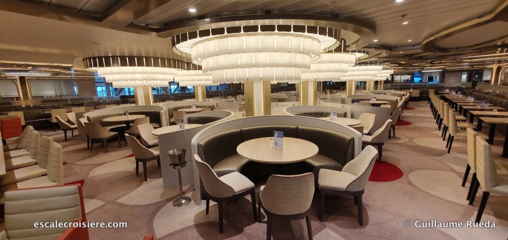 On y déguste des spécialités japonaises préparées sous leurs yeux des convives par les chefs Teppanyaki. C’est un véritable dîner spectacle. C’est l’endroit idéal pour une soirée qui sort de l’ordinaire. Tout en admirant son cadre au style oriental chaleureux, les passagers peuvent déguster des spécialités japonaises fraîchement préparées juste sous leurs yeux par de grands chefs.