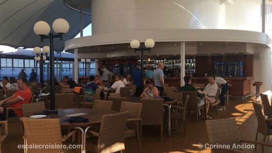 J’ai été agréablement surprise par la modernité du paquebot et par son agencement. Je rêvais d’y trouver de grands solariums et surtout un espace pour me restaurer matin, midi et soir à l’extérieur. Mon vœu a été exaucé et j’en suis bien heureuse car sur cette destination, passer les soirées sur le pont fait partie de mes petits plaisirs.