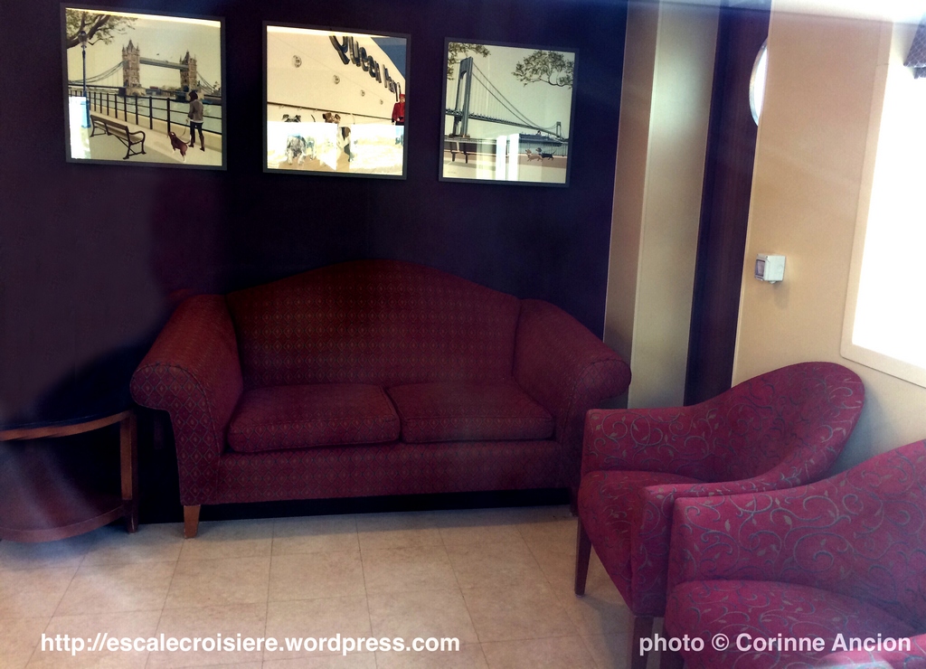 Sur tribord juste sur la droite en entrant au Commodor Club on trouve ce salon réservé aux amateurs de cigars, le Chruchill’s Cigar Lounge