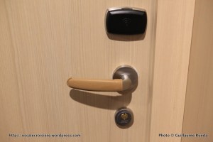 Viking Star - poignée en cuirToutes les cabines sont des suites avec balcon ou terrasse. Le comble du luxe, même les poignées de portes sont en cuir (tout comme les mains courantes d’ailleurs dans les couloirs et les escaliers).